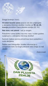 POZIV NA AKCIJU ČIŠĆENJA LOVIŠTA POVODOM DANA PLANETA ZEMLJE Povodom obilježavanja Dana planeta Zemlje –...