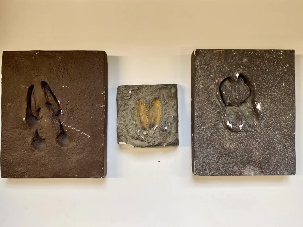 Zbirka tragova krupne divljači otisnutih u gipsu.