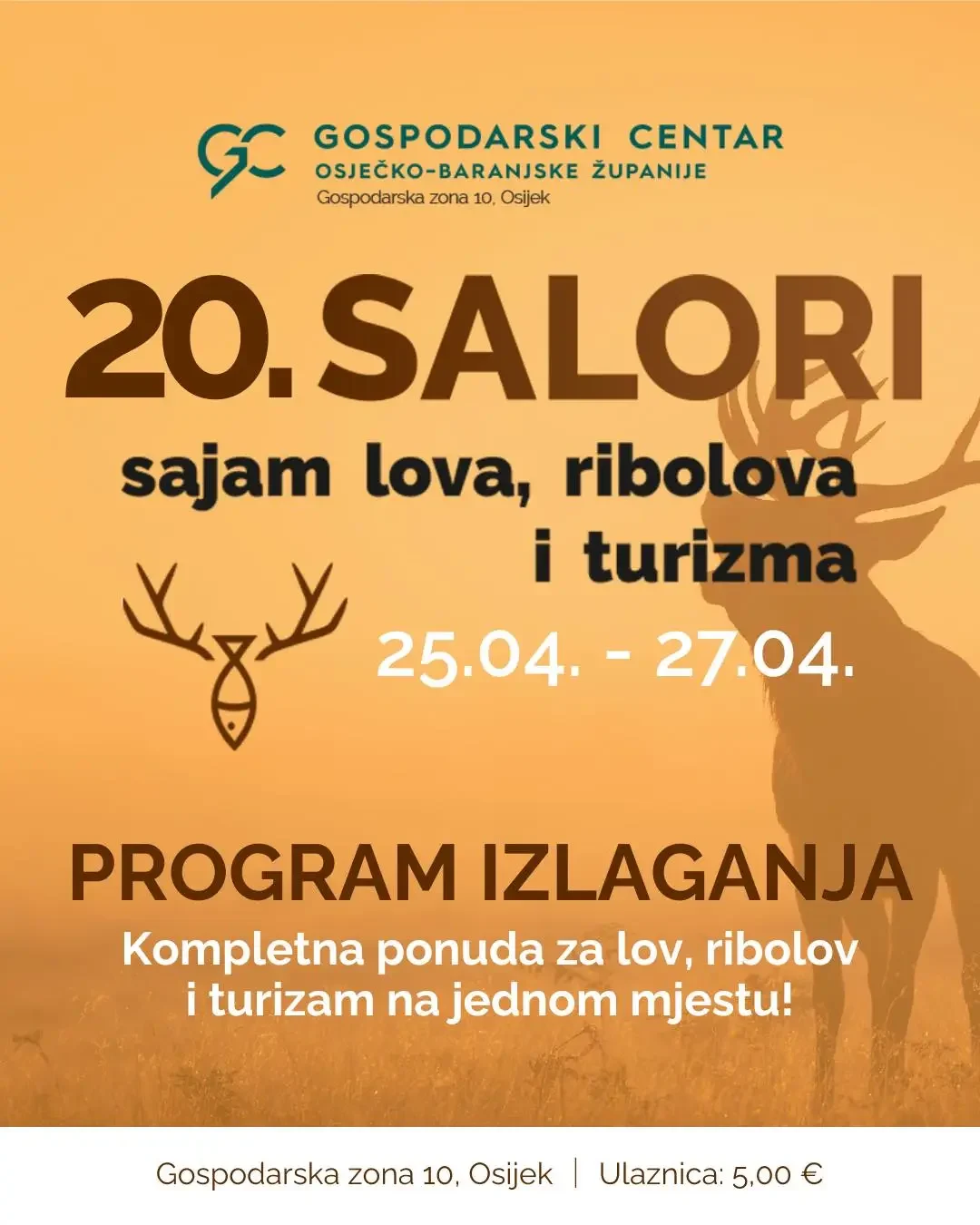 Od 25. do 27. travnja 2025., Osijek će biti domaćin jubilarnog 20. izdanja Sajma lova, ribolova i turizma SALORI, koji se ove godine održava u prostoru Gospodarskog centra Osječko-baranjske županije.