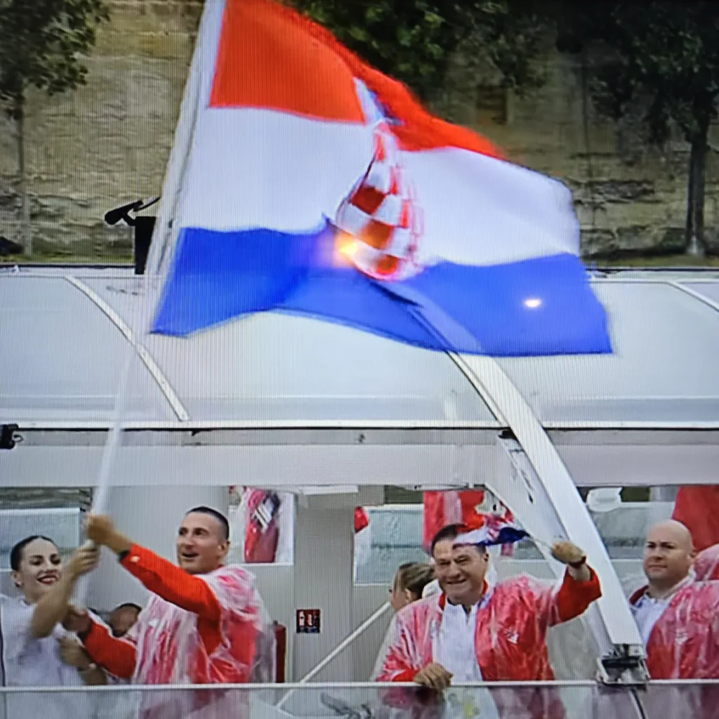 Nakon četiri sata ceremonije u petak navečer paljenjem olimpijskog plamena otvorene su Olimpijske igre u Parizu. Po prvi put otvaranje nije održano na stadionu već je premješteno na otvoreni prostor palače Trocadero u blizini Eiffelovog tornja do koje su sportaši dolazili brodovima po rijeci Seini. Delegacije država plovile su svaka na svojem brodu, a veliku hrvatsku zastavu na brodu s hrvatskom delegacijom nosili su dugogodišnji član Hrvatskog lovačkog saveza Giovanni Cernogoraz i judašica Barbara Matić, dok su ostali mahali s manjim zastavicama, a s broda su se čuli povici „Hrvatska, Hrvatska!“. Ukupno je do palače doplovilo 85 brodova a sve je pratio i dodatni umjetnički program. Na screenshotu preuzetog iz HRT-ovog prijenosa može se vidjeti dio atmosfere.