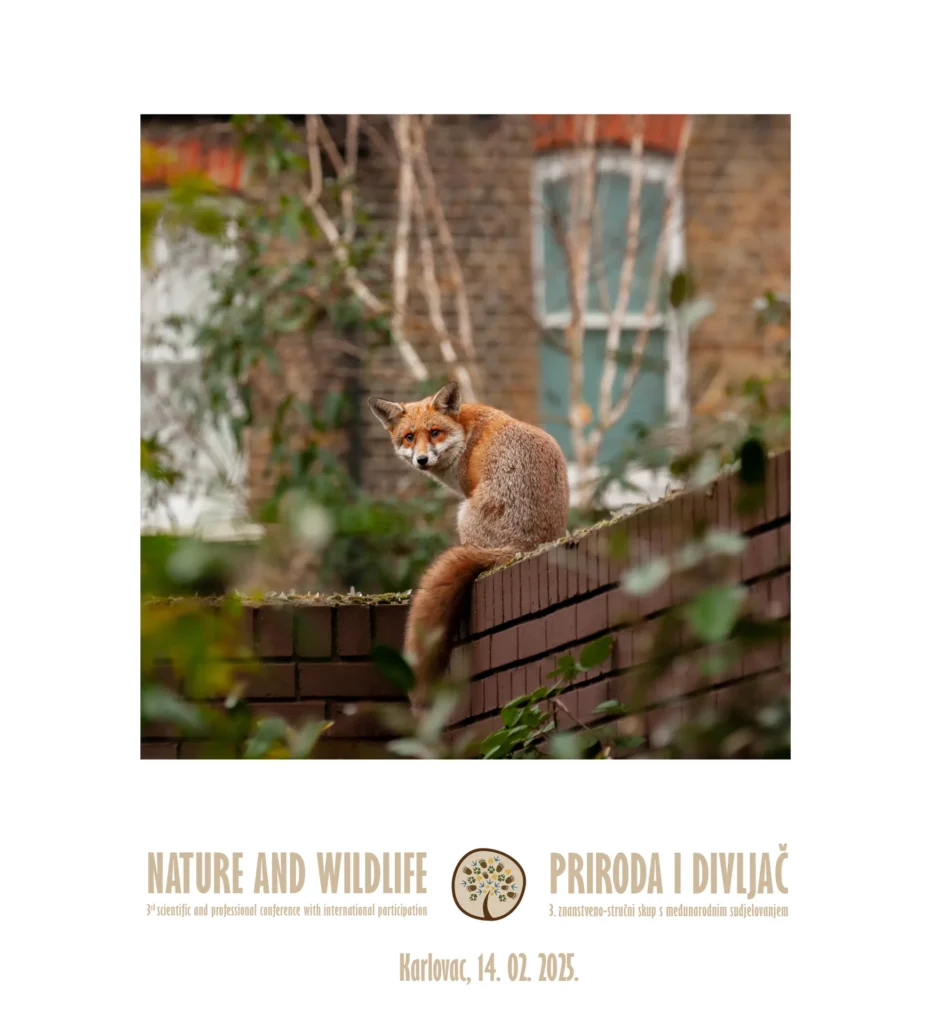 Veleučilište u Karlovcu organizira 3. znanstveno-stručni skupu s međunarodnim sudjelovanjem „Priroda i divljač“ te okrugli stol „Krpelji i krpeljima prenosive bolesti“, dana 14. 2. 2025. godine s početkom u 9:00 sati na Veleučilištu u Karlovcu (Atrij znanja, Trg J.J.Strossmayera 9, Karlovac). Radna tema ovogodišnjeg skupa je “Divljač i nelovne površine”.